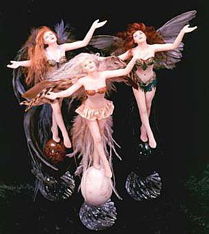 This is a small resin doll. She is about 6 ½ inches tall. She is limited to 1,500 in my lifetime. I do her when I feel impressed to play with feathers. She has been presented in several ways over the years but now she usually stands on a colored alabaster egg.