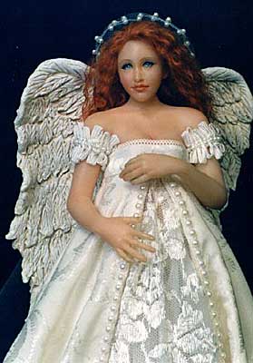 She holds a Virgin's lamp. It is modeled after lamps used in ancient times. The parable of the 10 Virgins kept coming to mind while I planned this doll. Since Ryan's death, I have struggled with my spirituality. I have dealt with many challenges in my life. The loss of my son has been by far the most difficult. Experience has taught me spiritual understanding is gained a drop at a time. Every time I gathered my courage and did the right thing, no matter how small, I gained a drop of oil in my lamp. Each drop represents this new spiritual growth ... or wisdom.